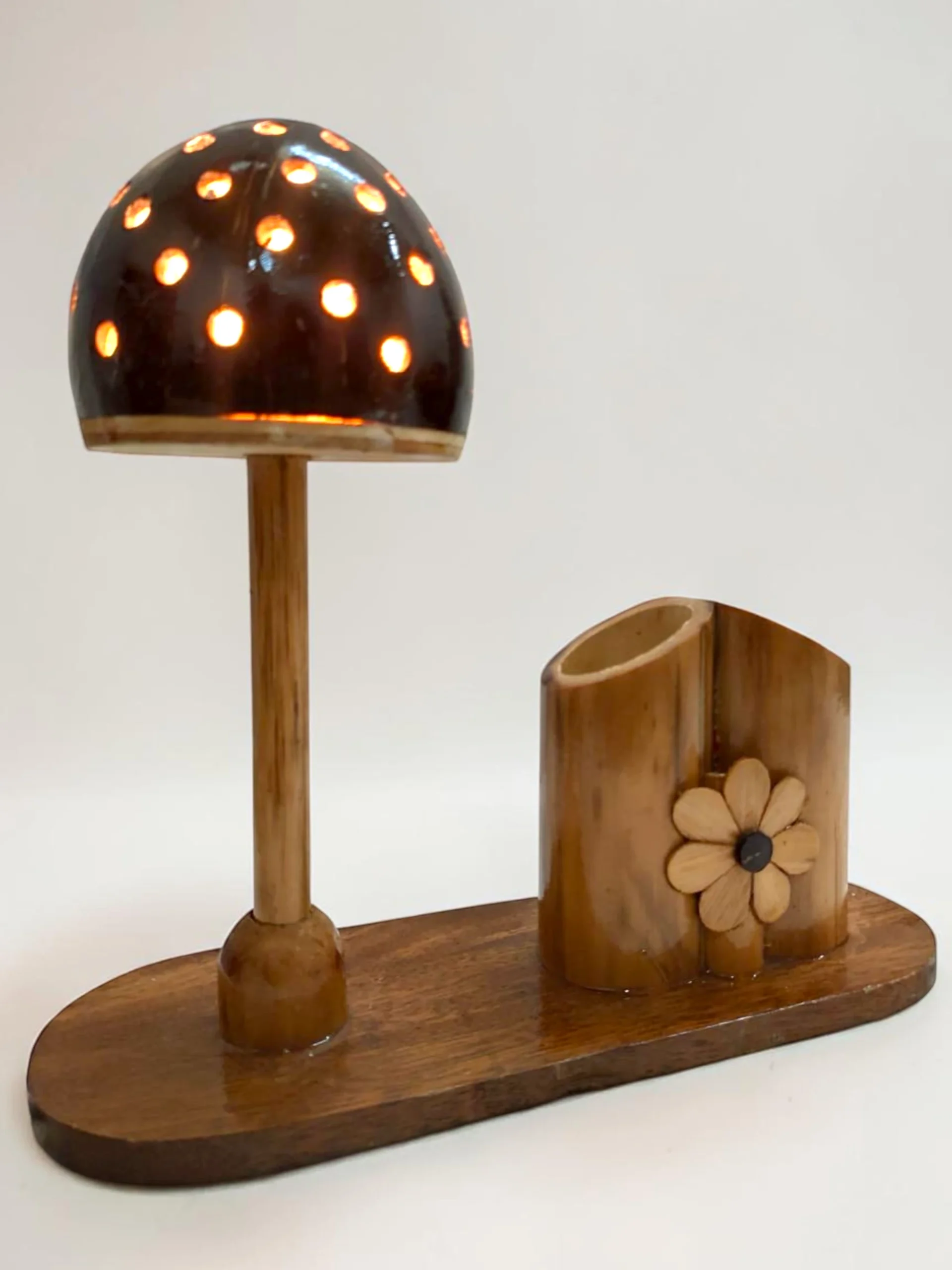 Handcrafted Wooden Lamp With Pen Holder