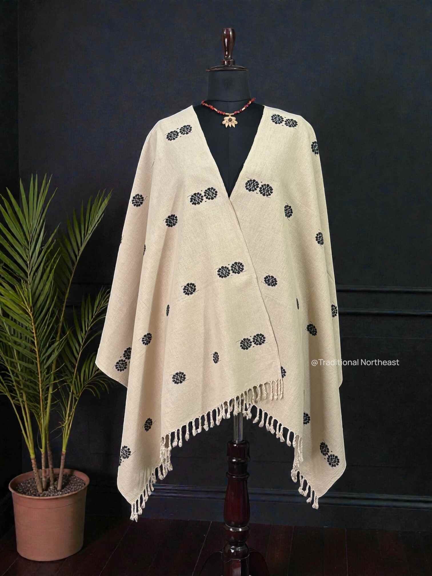 Shawl – Eri Silk – Black Flower Design
