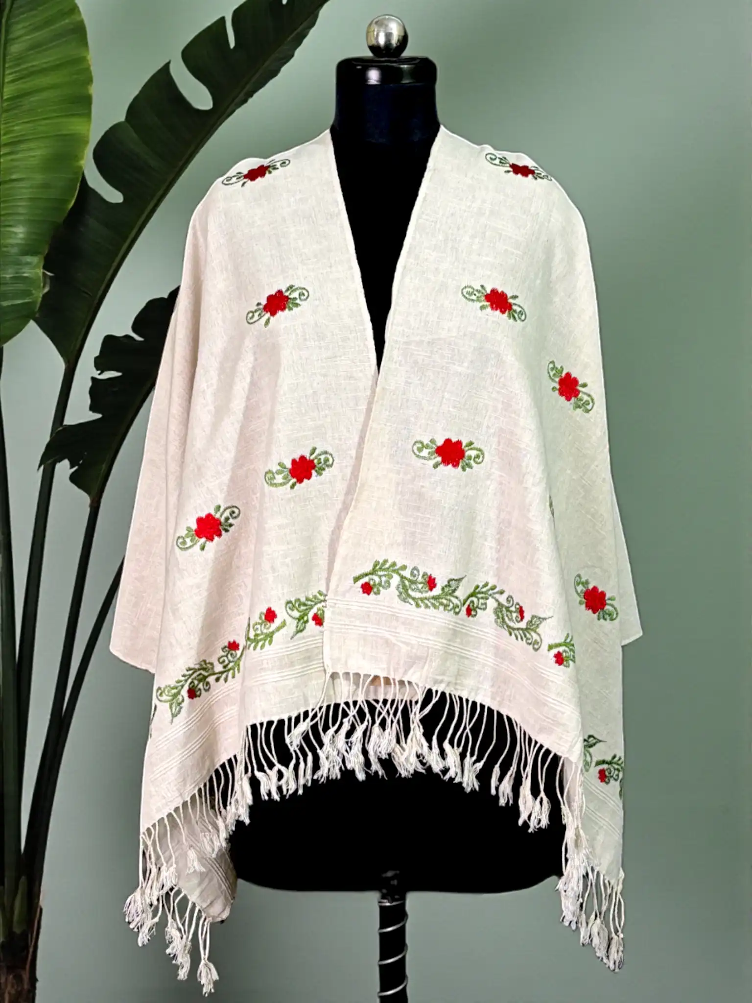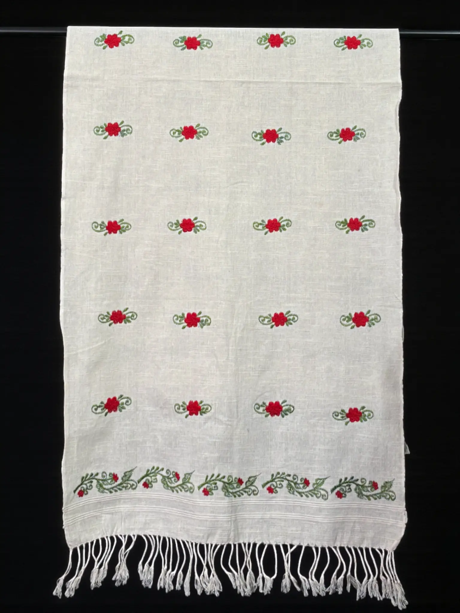 Stole – Khadi – Green/Red Flower