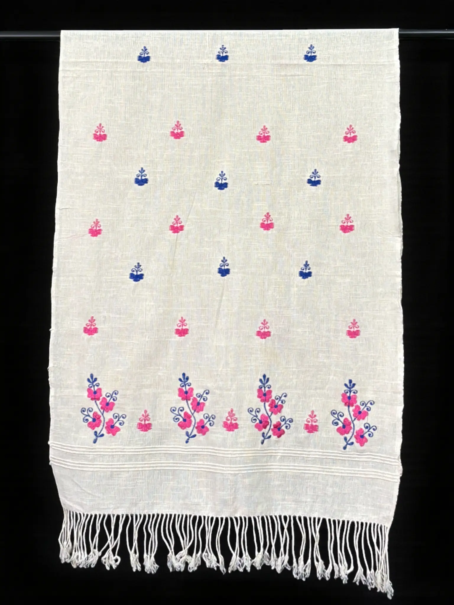 Stole – Khadi – Pink/Navy Flower